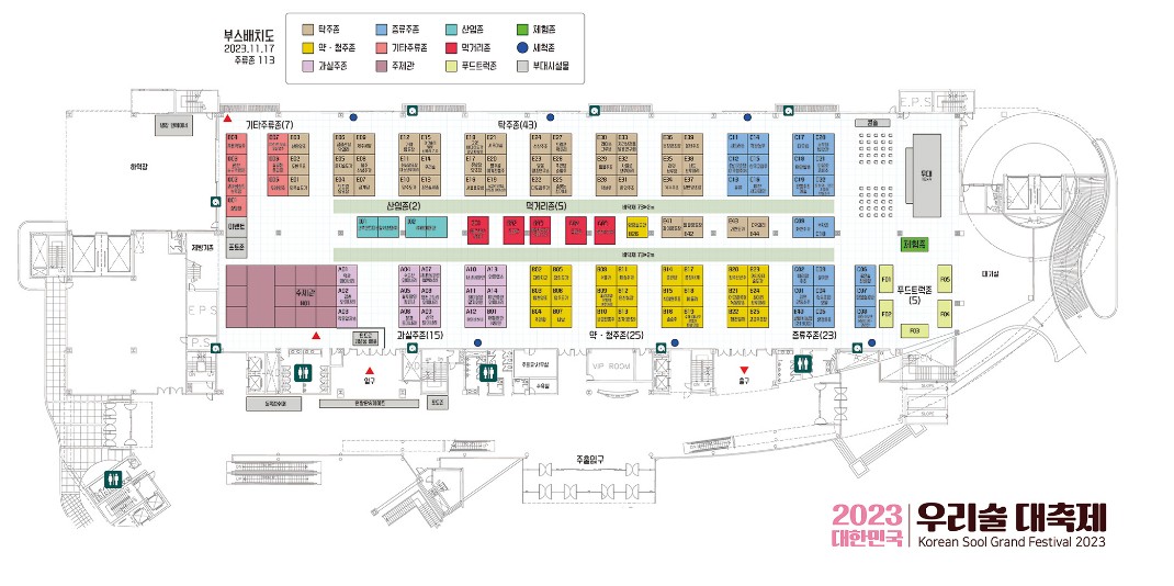 각종 무대행사와 다양한 주류존 · 푸드트럭존 · 탁주존 · 증류주존 · 먹거리존 · 과실주존 · 약 ·청주존등의 부스들과